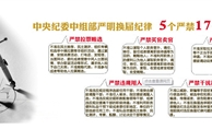 “5個(gè)嚴(yán)禁”“17”個(gè)不準(zhǔn)”和“5個(gè)一律” “5個(gè)嚴(yán)禁”: 嚴(yán)禁拉票賄選、嚴(yán)禁買(mǎi)官賣(mài)官、嚴(yán)禁跑官要官、嚴(yán)禁違規(guī)用人、嚴(yán)禁干擾換屆“17個(gè)不準(zhǔn)”: 1、不準(zhǔn)在民主推薦、民主測(cè)評(píng)、組織考察和選舉中搞拉票等非組織活動(dòng),通過(guò)宴請(qǐng)、安排消費(fèi)活動(dòng)、打電話(huà)、發(fā)短信、當(dāng)面拜訪(fǎng)、委托或者授意中間人出面說(shuō)情、舉辦聯(lián)誼活動(dòng)等形