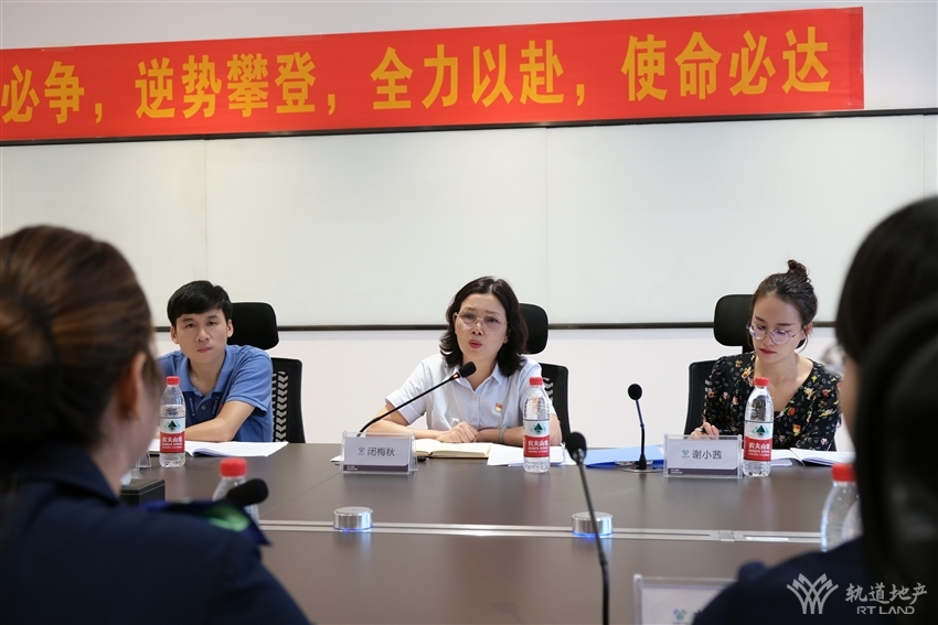 參觀結(jié)束后,閉梅秋一行聽取了軌道地產(chǎn)咨詢公司上半年經(jīng)營工作情況匯報。劉燕從公司目前經(jīng)營范圍、運營模式、企業(yè)定位、2022年上半年營銷工作措施及成效、黨風(fēng)廉政建設(shè)工作情況等進行全面匯報。與會人員就目前在營銷業(yè)務(wù)工作方面存在的難點、經(jīng)營困境進行了交流討論。